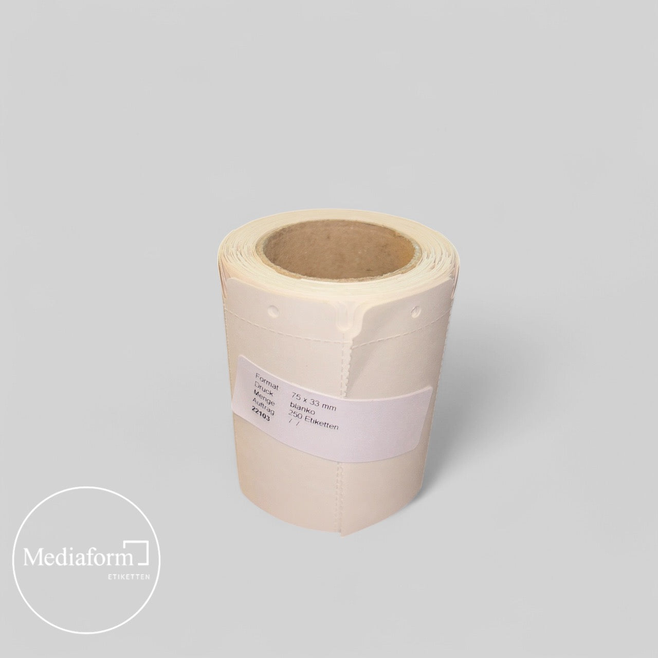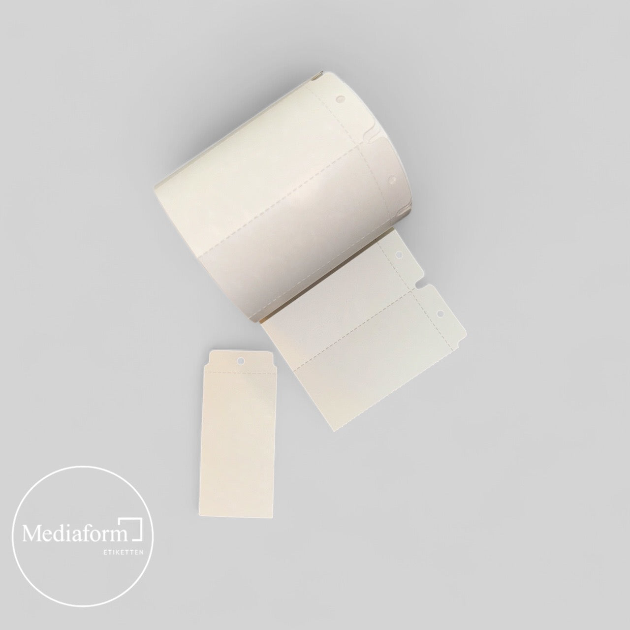 Hängeetiketten 75 x 33 mm matt weiß mit Loch und Preisabriss